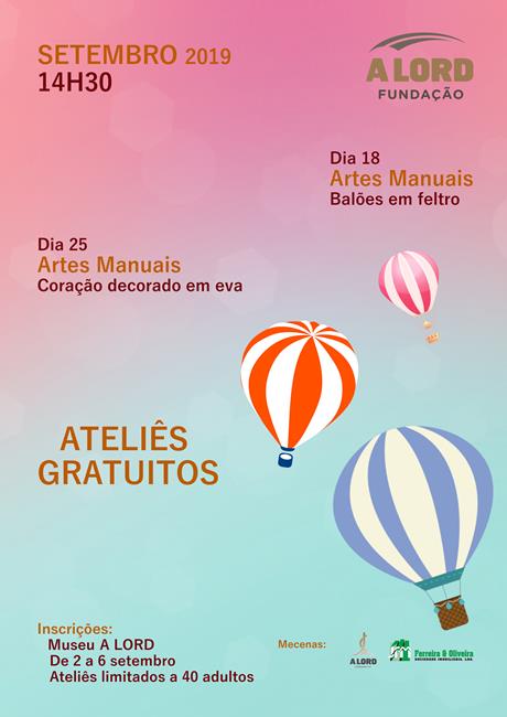 Inscrições | ATELIÊS GRATUITOS PARA ADULTOS | 2 a 6 setembro 2019